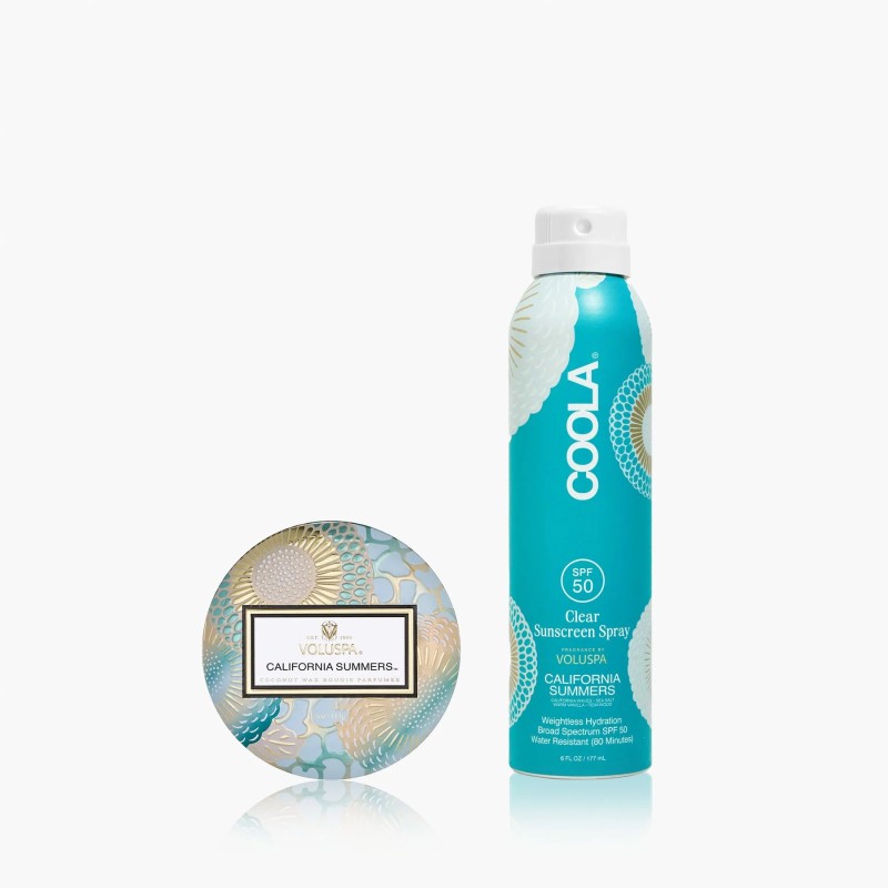 Voluspa California Summers x Coola SPF Summer Essentials Bundle, $44, available here: "I'm a big fan of Voluspa candles for their burn times (this one is 25 hours) and uniquely bold (yet not overpowering) scents. The brand's new partnership with Coola infuses one of my favorite SPF products with the California Summers fragrance I know and love. Featuring sea salt and vanilla, this bundle has all the warm, beachy energy I need, especially in NYC." —Brooke