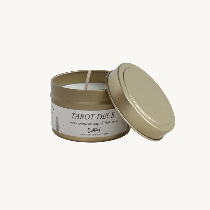 Catbird Tarot Deck Travel Candle, $18, available here: "I love a candle that smells like a feeling or moment in time. With notes of pencil shavings and dusty, dry rose petals, this vegan, four-ounce wax votive makes my apartment feel like a cozy, mesmerizing 19th-century library in Paris." —Brooke