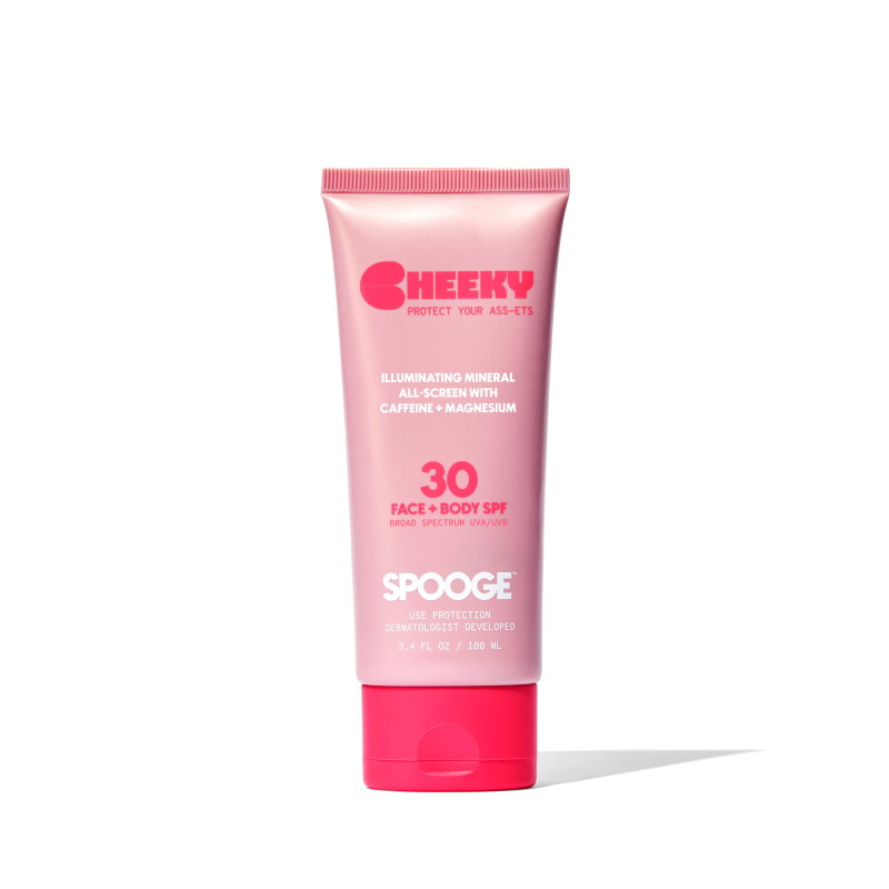 Spooge Cheeky Mineral All-Screen SPF 30, $32, available here: "I'm an advocate for absolutely slathering any visible skin with SPF before stepping outside my apartment, but I rarely encounter a sunscreen formula specifically designed for your behind. Yes, you read that right — Spooge's Cheeky is a mineral sunscreen made for your butt (and the rest of your body, of course). It's packed with magnesium for hydration, caffeine to 'revitalize' skin, uva ursi leaf extract for brightening and iron oxides for a hint of illumination as well as UVA and UVB protection. It also leaves a slight shimmer across the skin, ensuring a glowing complexion sans sun damage." —Catie