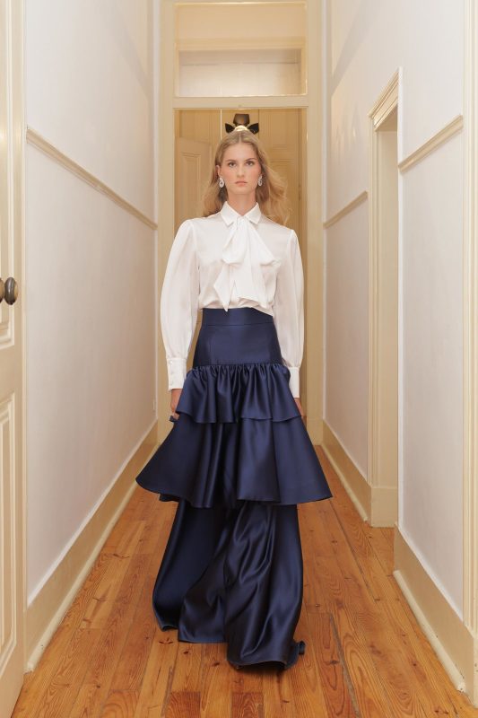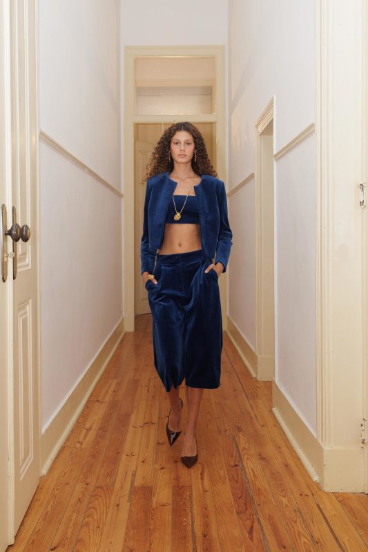 Though born in São Tomé and Principe, Silva has lived in Portugal since the age of 4, providing her with a unique point of reference for designing. Each season, this manifests as refined tailoring and classic pieces, such as polished pussybow blouses, pleated tea-length skirts in African motifs and luxe fabrics such as velvet and duchess satin. Over the last decade, Roselyn Silva's eponymous label has flourished by embracing this duality of Silva's heritage and translating it into the present day. Her latest collection feels reminiscent of 2000s-era Carolina Herrera — in shapes and silhouette only, because everything else is so distinctly Silva.