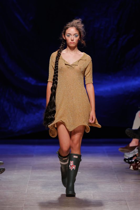 As far as the looks themselves, sheer lamé dresses with wired hems and striped knit sets were styled with rainboots, basket bags and fringed folk scarves reminiscent of something you'd find at your grandmother's house. This also highlights the collection's own ephemerality with the awareness that these pieces, too, will one day become "trugia," or destined to be forgotten, yet always capable of being rediscovered.
