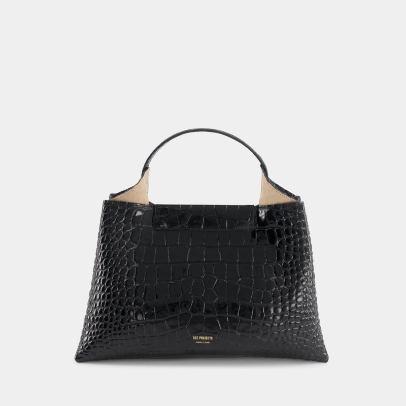 Ree Projects Elieze Croc Embossed Patent Leather Clutch, $823, available here