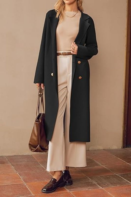 Your go-to smart casual sweater coat for workdays and beyond. Knee-length coverage with double-breasted design offers wind resistance, while lightweight fabric delivers easy warmth. Layer it over blouses or dresses for instant chic.