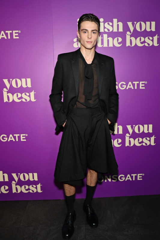"[My favorite outfit from 'I Wish You All the Best'] is this one look that Ben wears to the roller rink scene: It's this gray pleated Heaven by Marc Jacobs skirt, and it has these white little ribbons on the side. We paired that with a tight shirt that was a little turtleneck, and then this Kim Petras shirt. That was my favorite [outfit] from the get-go, and I was so excited to film those scenes in that outfit. It just felt so cute.