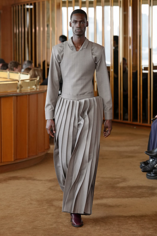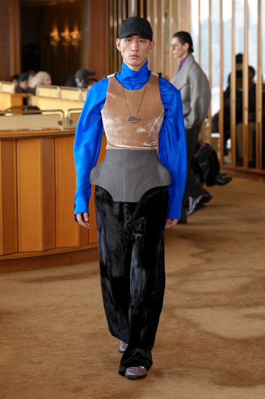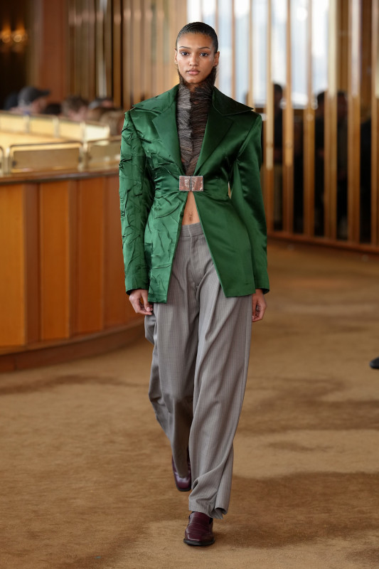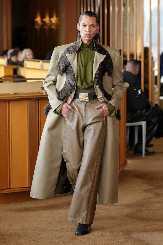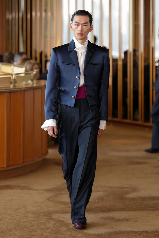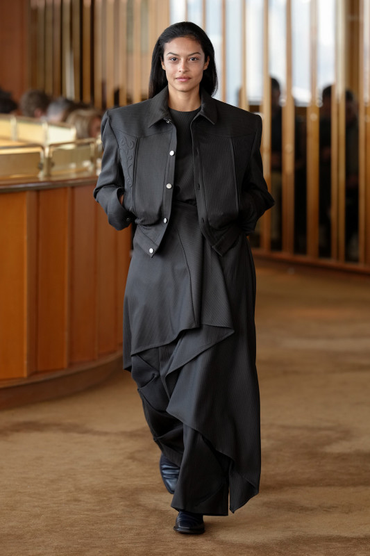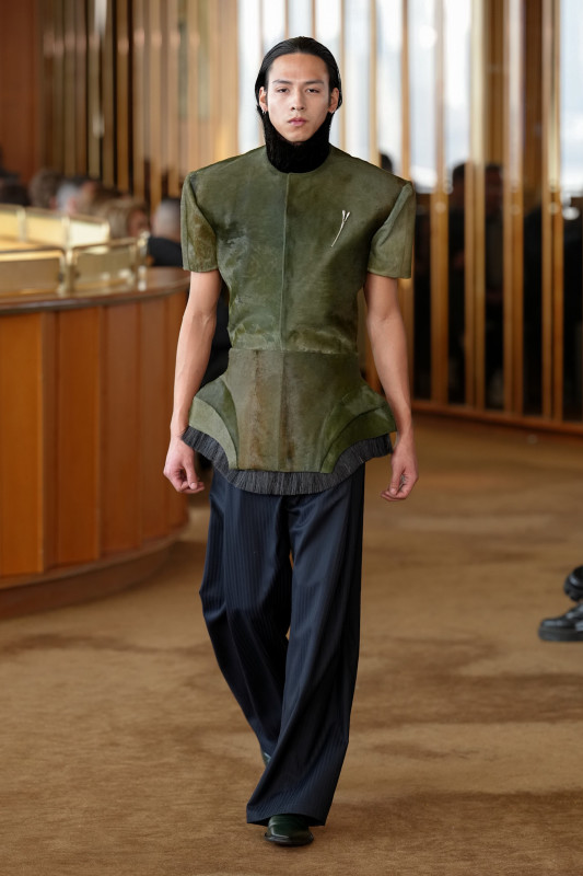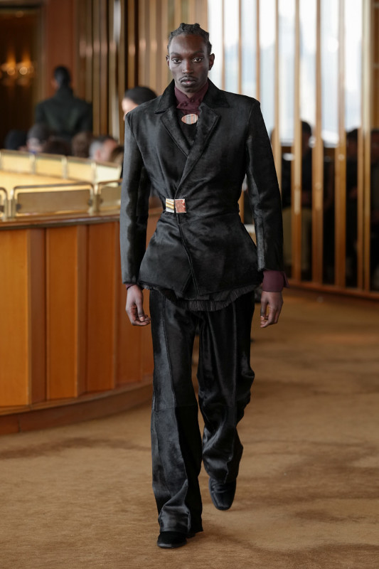 This season, Campillo also collaborated with Mexican artisans to develop innovative uses of horsehair. "As an analogy to our main inspiration, we constructed suits very differently and approached tailoring very differently by first creating the structure and then covering it with the fabric," he explained. "So it's almost as if the fabric and garment are separate between each other."