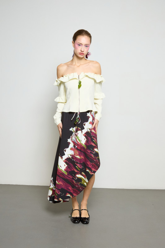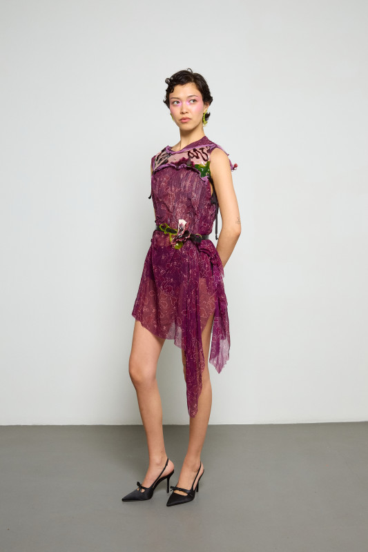 With this in mind, Zimbalist's priorities shifted in the lead-up to Fall 2026: "We're introducing tailored trousers. We have these more feminine dresses with prints and then using the biomaterial now truly as an embellishment," she explained. This way, the bioplastic still plays a leading role in the brand's identity, but is less of an obstacle for wholesale and commercial opportunities.