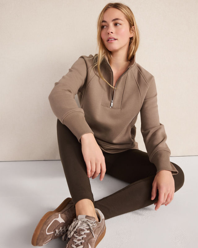 Cloud Fleece Half-Zip Pullover, $138, available here and Balance Organic Cotton Leggings, $68, available here