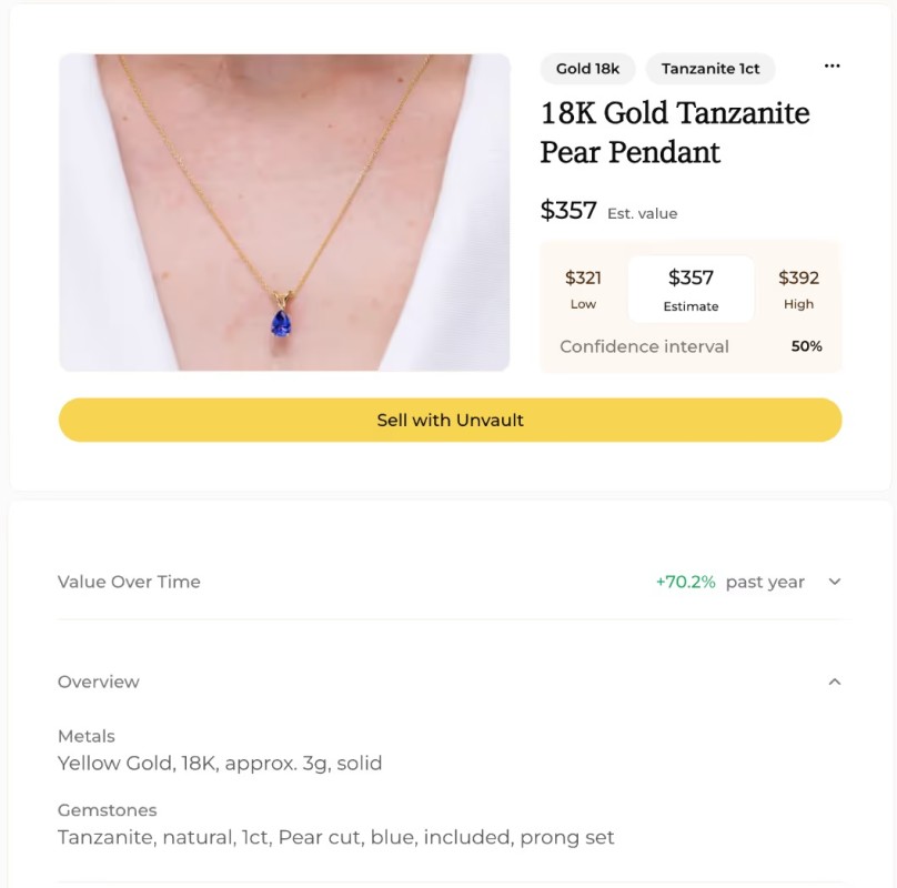 "Ultimately, we want to be the source of truth for every piece of jewelry," Singhvi says. "You have something, Unvault is the place to get a value of it."
