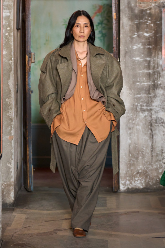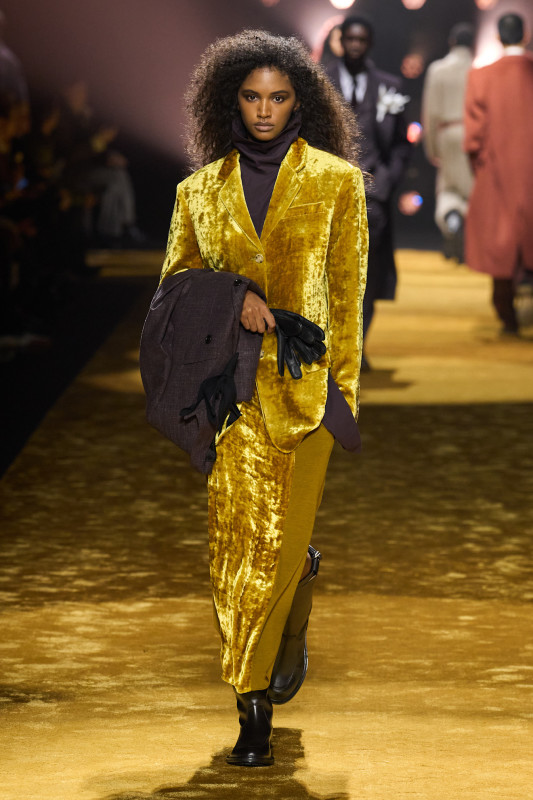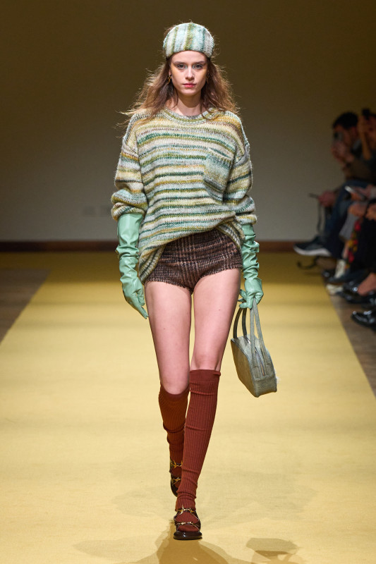 Boss, Prada and MM6 Maison Margiela campaigned for mustard yellow as fall's standout color, while seafoam green (eerily reminiscent of the 2010s-era mint green craze) emerged across Vivetta, Jil Sander and Diesel's runways. Italian designers also bid adieu to trad wife silhouettes, instead embracing menswear detailing across womenswear styles.